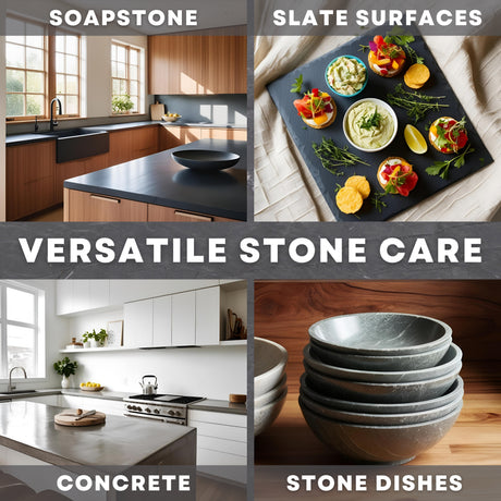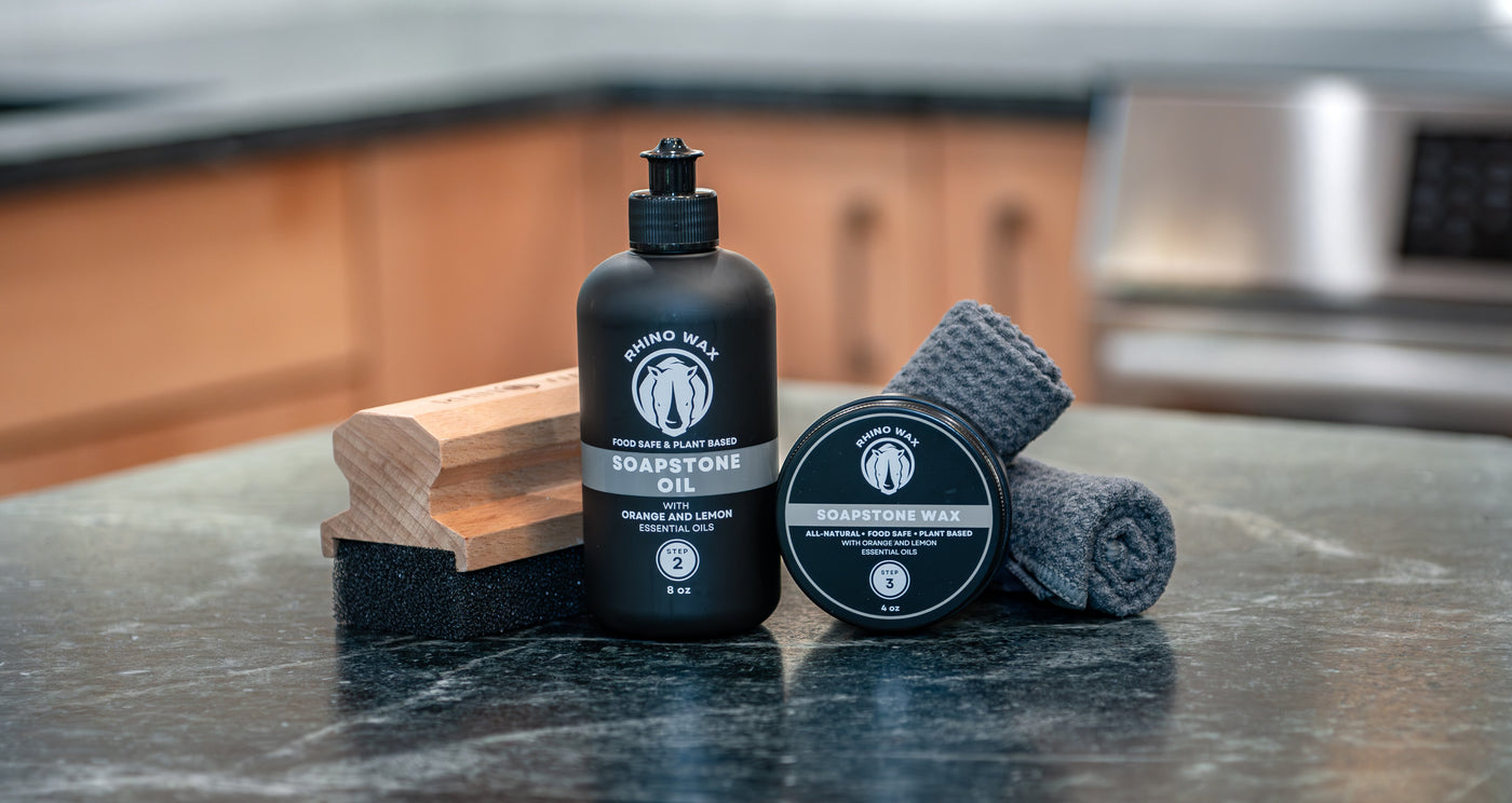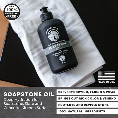 Soapstone is tough, timeless, and surprisingly easy to maintain with the right care. Our soapstone care products help deepen its natural color, reduce the appearance of scratches, and protect surfaces from daily wear. Regular oiling enhances the stone’s rich, matte finish while keeping it looking smooth and refined.